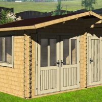 В комплект входит: стены из профилированного массива сосны или ели толщиной 44мм двухстворчатая и одностворчатая двери окно доска пола толщиной 20мм сплошной настил крыши толщиной 17мм фундаментные балки, покрытые антисептическим раствором для предотвращения гниения гвозди и шурупы в достаточном количестве для сборки домика комплекты дверной и оконной фурнитуры деталировки, чертежи и руководство по сборки. По желанию заказчика двухстворчатая дверь может быть как глухая, так и остекленная.