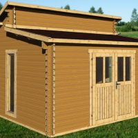 В комплект входит: стены из профилированного массива сосны или ели толщиной 34мм двухстворчатая дверь два окна доска пола толщиной 20мм сплошной настил крыши толщиной 17мм фундаментные балки, покрытые антисептическим раствором для предотвращения гниения гвозди и шурупы в достаточном количестве для сборки домика комплекты дверной и оконной фурнитуры деталировки, чертежи и руководство по сборки. По желанию заказчика двухстворчатая дверь может быть как глухая, так и остекленная.
